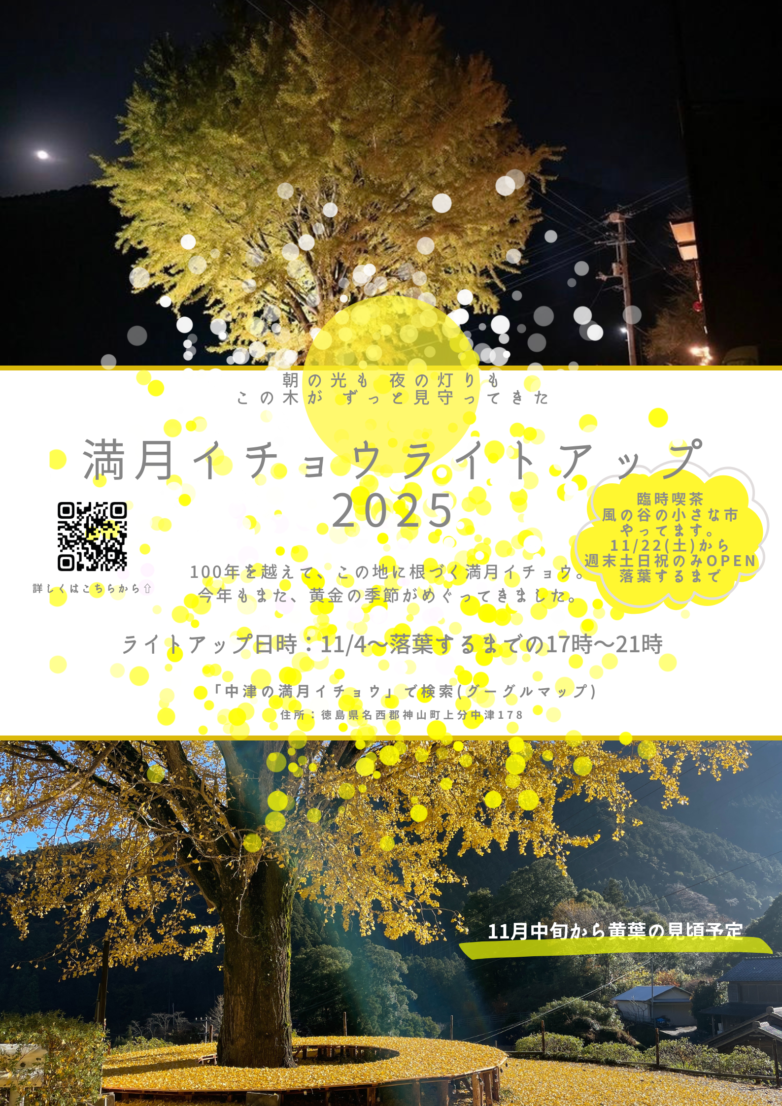 神山町上分の満月のようにまんまるに育った「満月イチョウ」が黄葉する季節がやってきました。