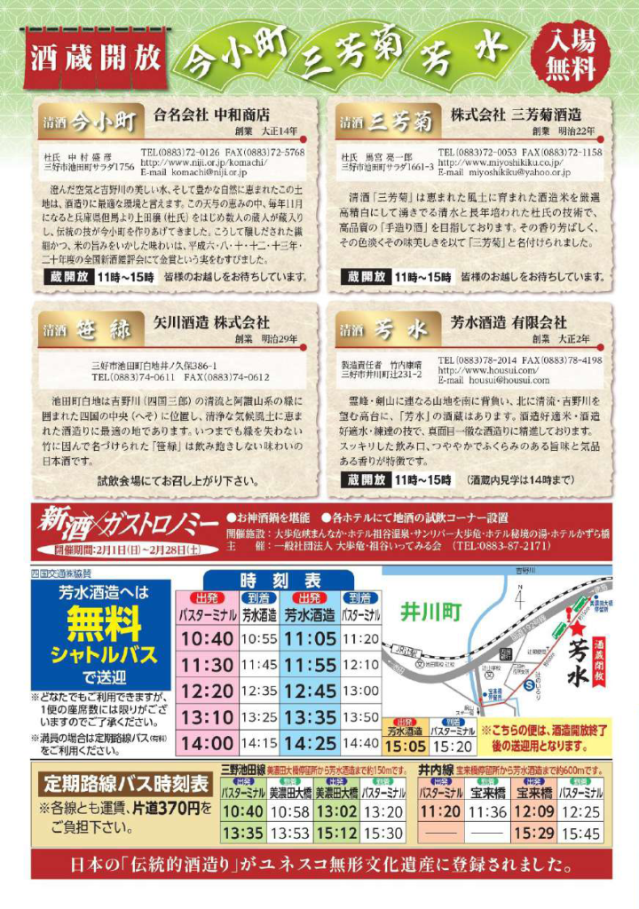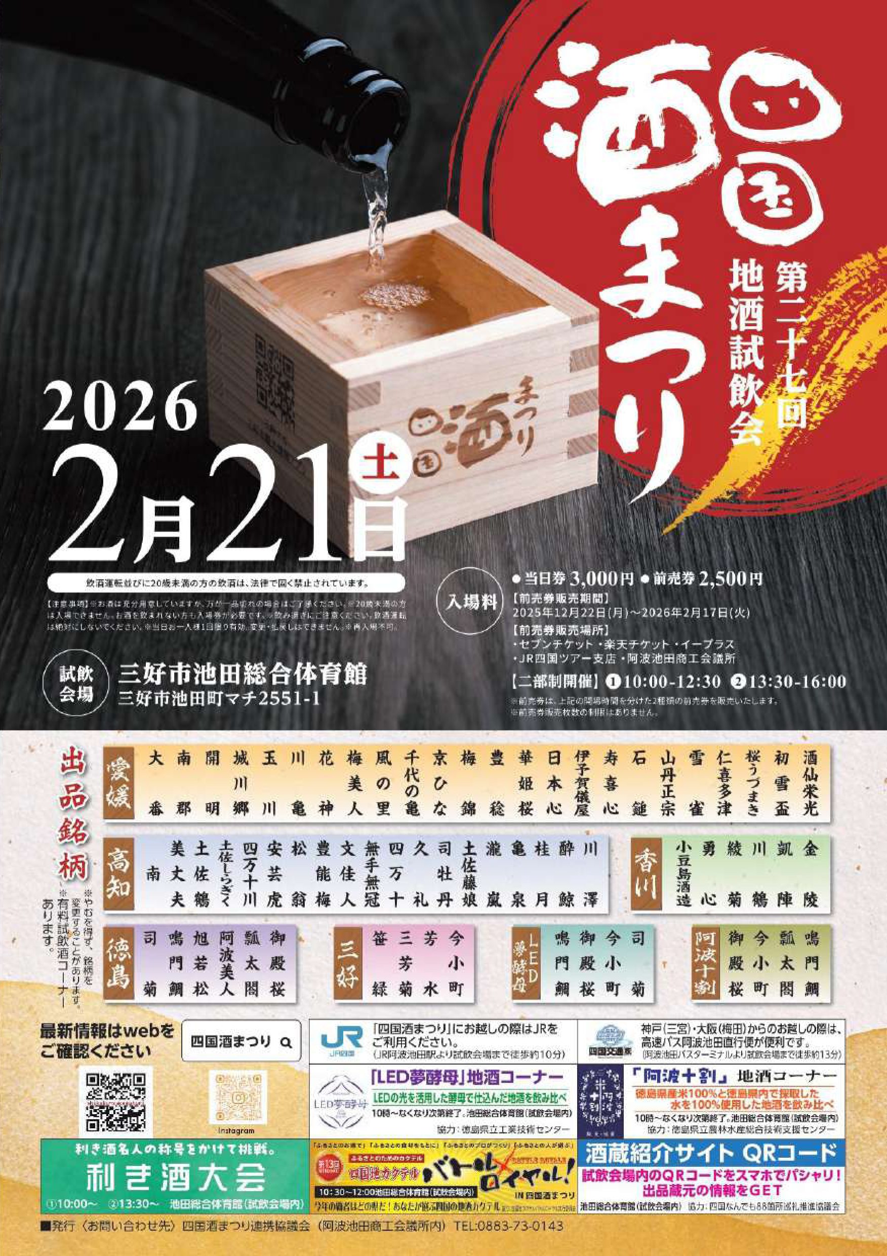 『四国酒まつり』は地酒の町・三好市を代表する新春のイベントで、新酒を中心に四国各地の銘酒が楽しめる四国最大の酒の祭りです♪