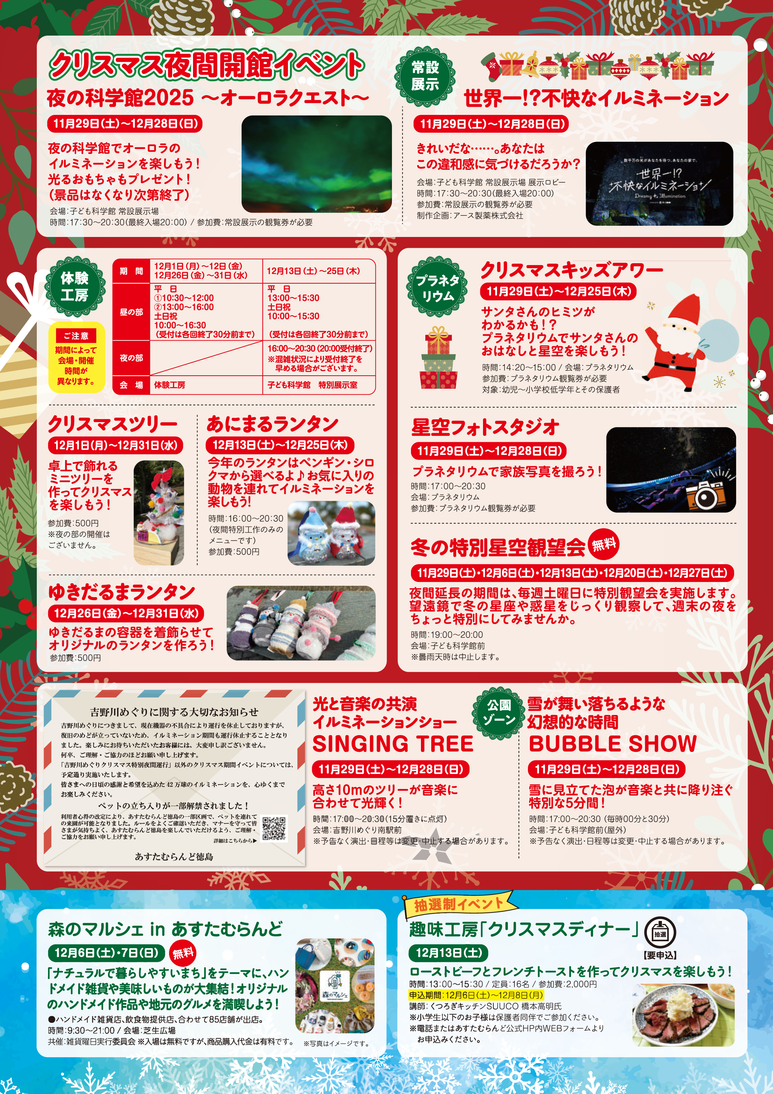 夜間限定イベントもたくさん開催するよ♪子ども科学館などの施設も夜間開館し、イベント盛り沢山でお待ちしております。