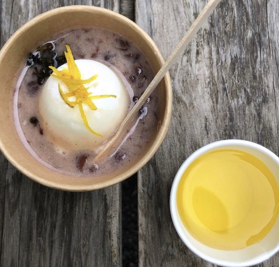 満月イチョウが黄葉している期間限定で、ゆっくりとご覧になっていただけるよう温かいお飲み物とぜんざいを販売しております。