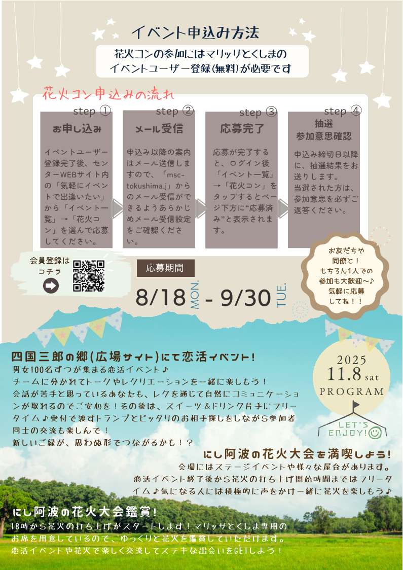 お申込み、詳細についてはウエブサイトURLをご確認ください。(マリッサとくしまHP)