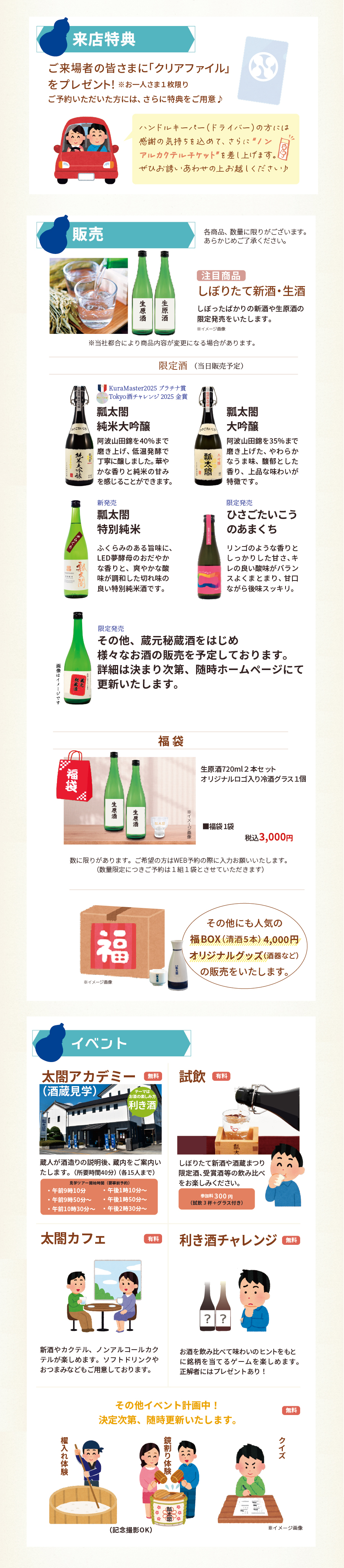 酒蔵まつり開催!限定酒・新酒 しぼりたて生原酒の販売を行います。