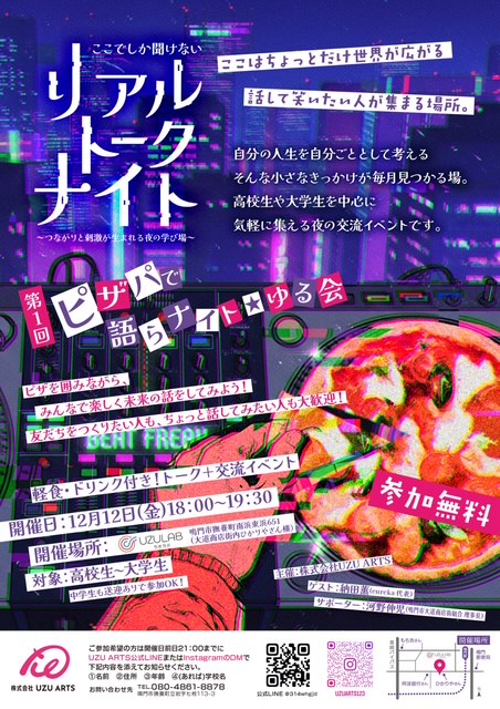 高校生や大学生を中心に気軽に集える夜の交流イベントです。