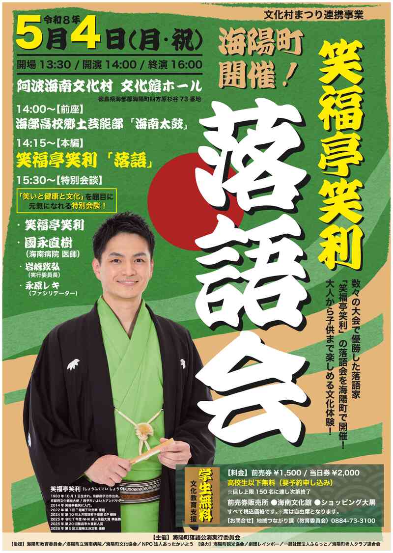阿波海南文化村 文化館ホールにて、落語会を開催します!