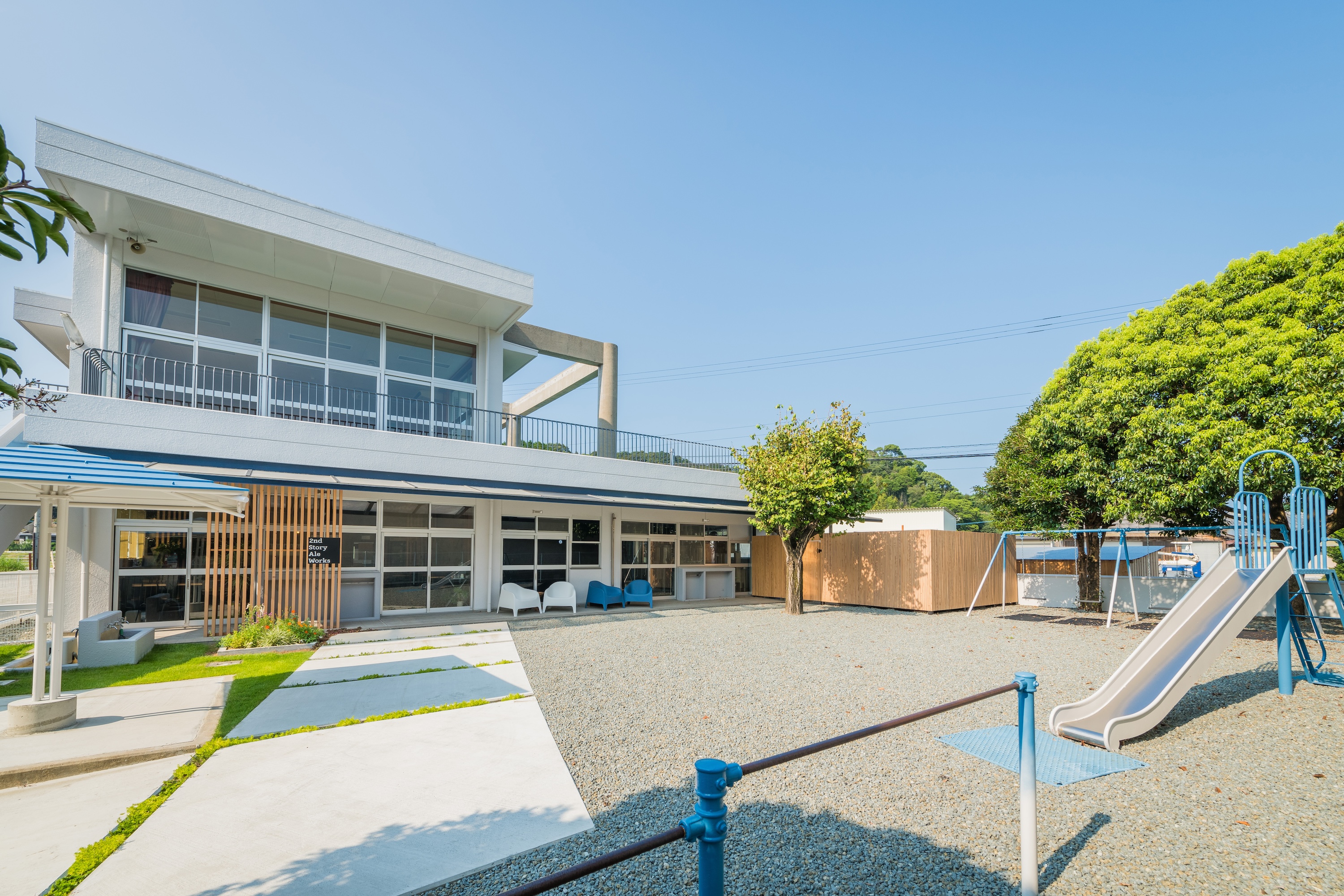これまでは醸造所のみでしたが、地元の保育所だった建物を再利用して醸造所と店舗に改装し、2024年の夏から営業を開始しました。外庭には滑り台やブランコもあり、子どもも大人も一緒に遊べるモルックやコーンホールも楽しめます。