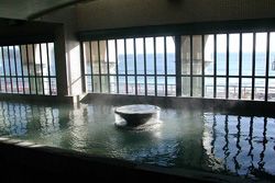 大浜海岸のすぐ隣にそびえ立ち、展望露天風呂では眼下に広がる太平洋の絶景をご覧いただけます。