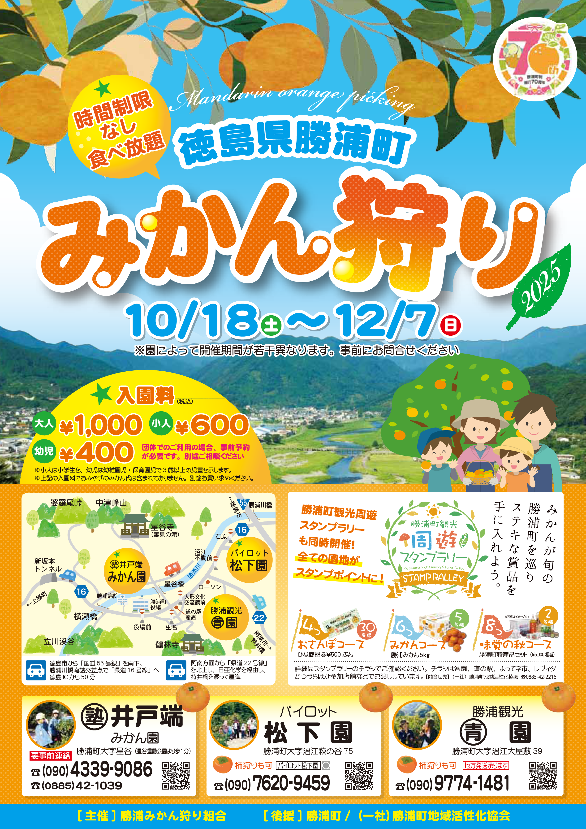 平地で、みかんの木の高さも低めです。お弁当持ち込み可。おいしい温州みかんをどうぞ。