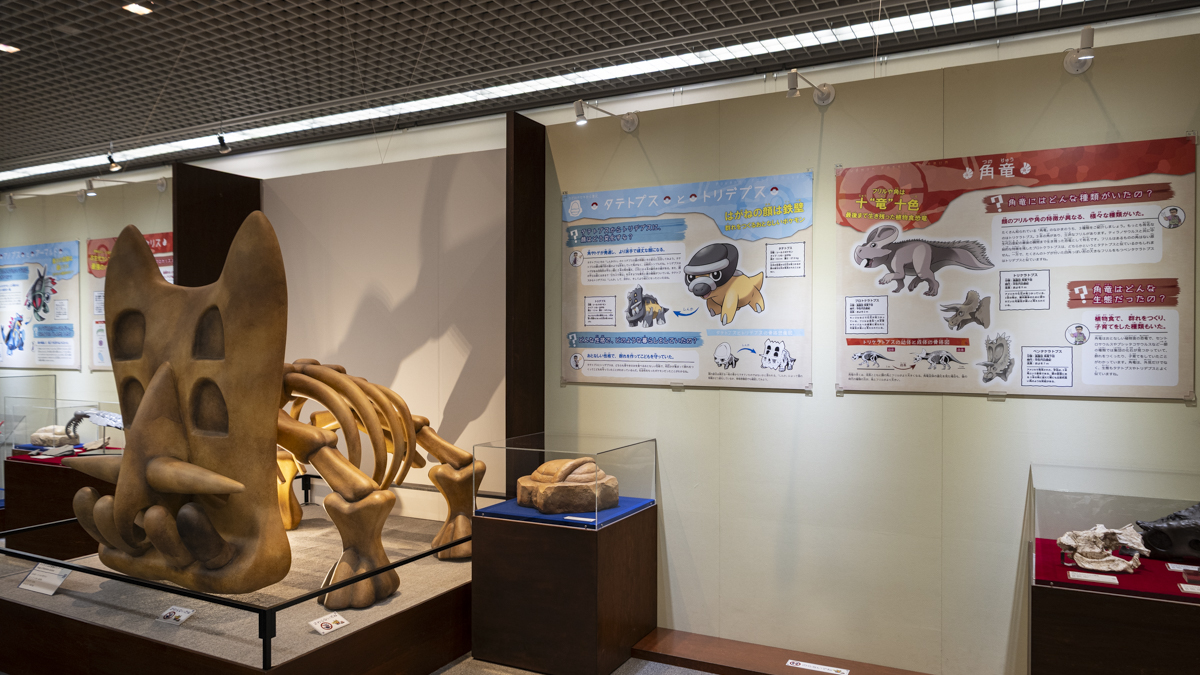 他にも、シールドポケモン「タテトプス」&「トリデプス」と、私たちの世界の「トリケラトプス」などの角竜との対比など、展示がたくさん。